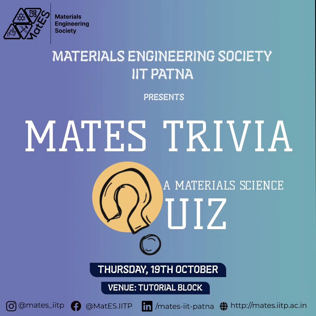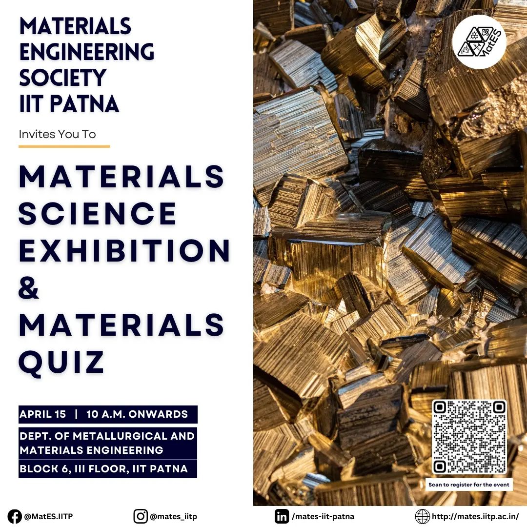 Materials Engineering Society (MatES), IIT PATNA is an association of UG & PG students, college faculty and staff of the Department of Metallurgical and Materials Engineering of IIT Patna.